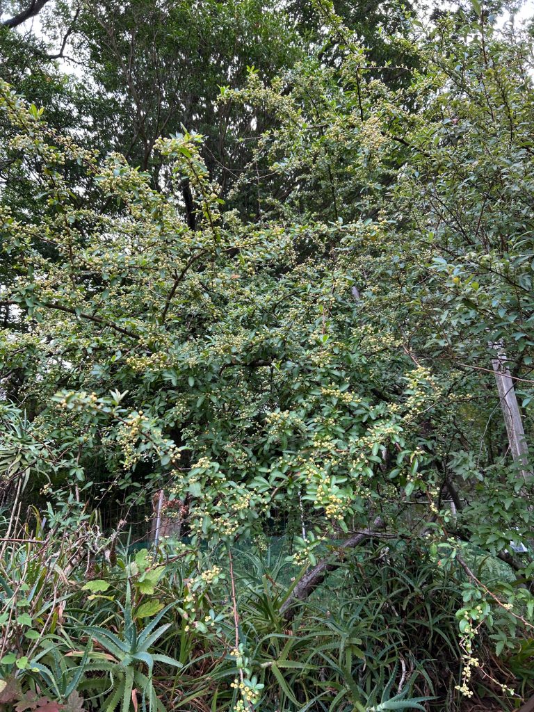 を残しているので、断然使いやすい。垂れ下がったピラカンサスの枝を添え木の二股の