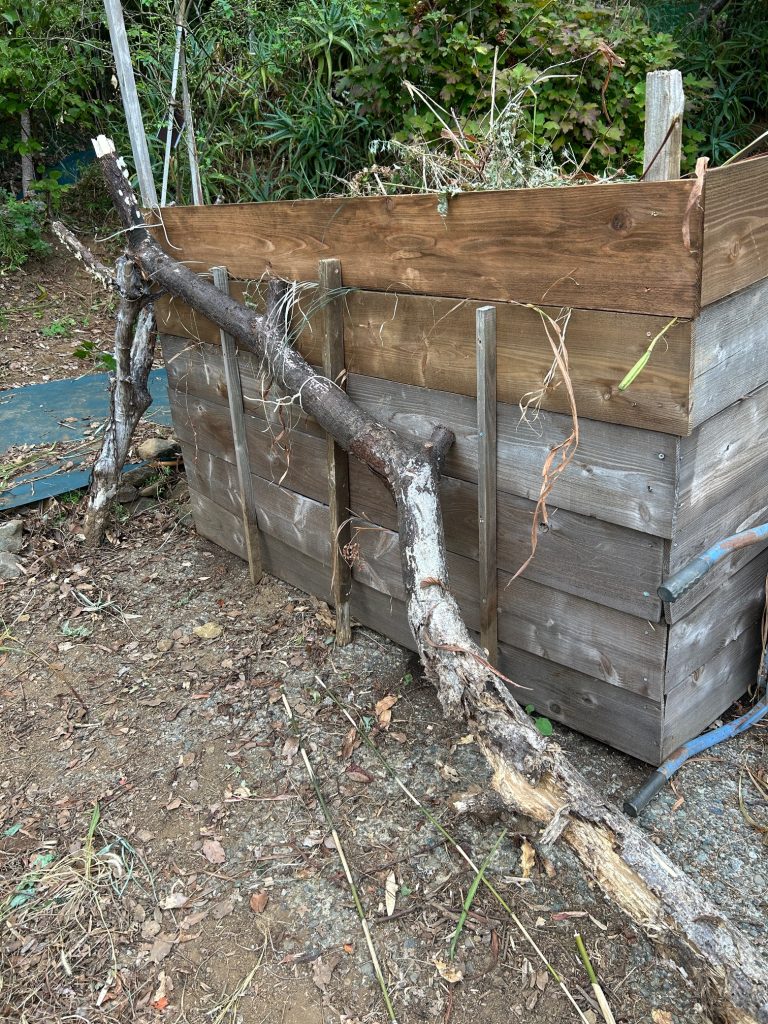 しているため培養土作りの入れ物がどんどん満杯になるので、この木の箱の高さをすこし