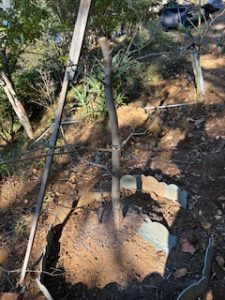 昨年ごろに植えたpoxtree も少しずつ大きくなってきたので、剪定して根元に土を入れた。