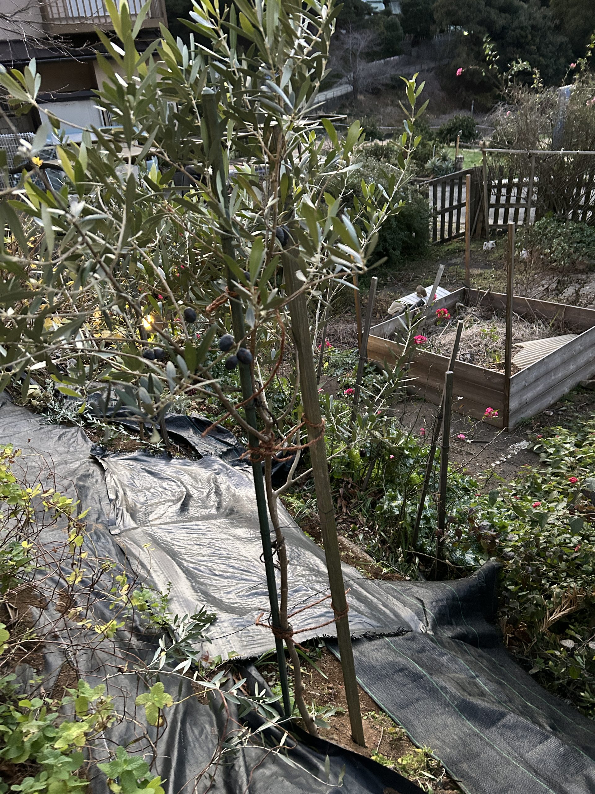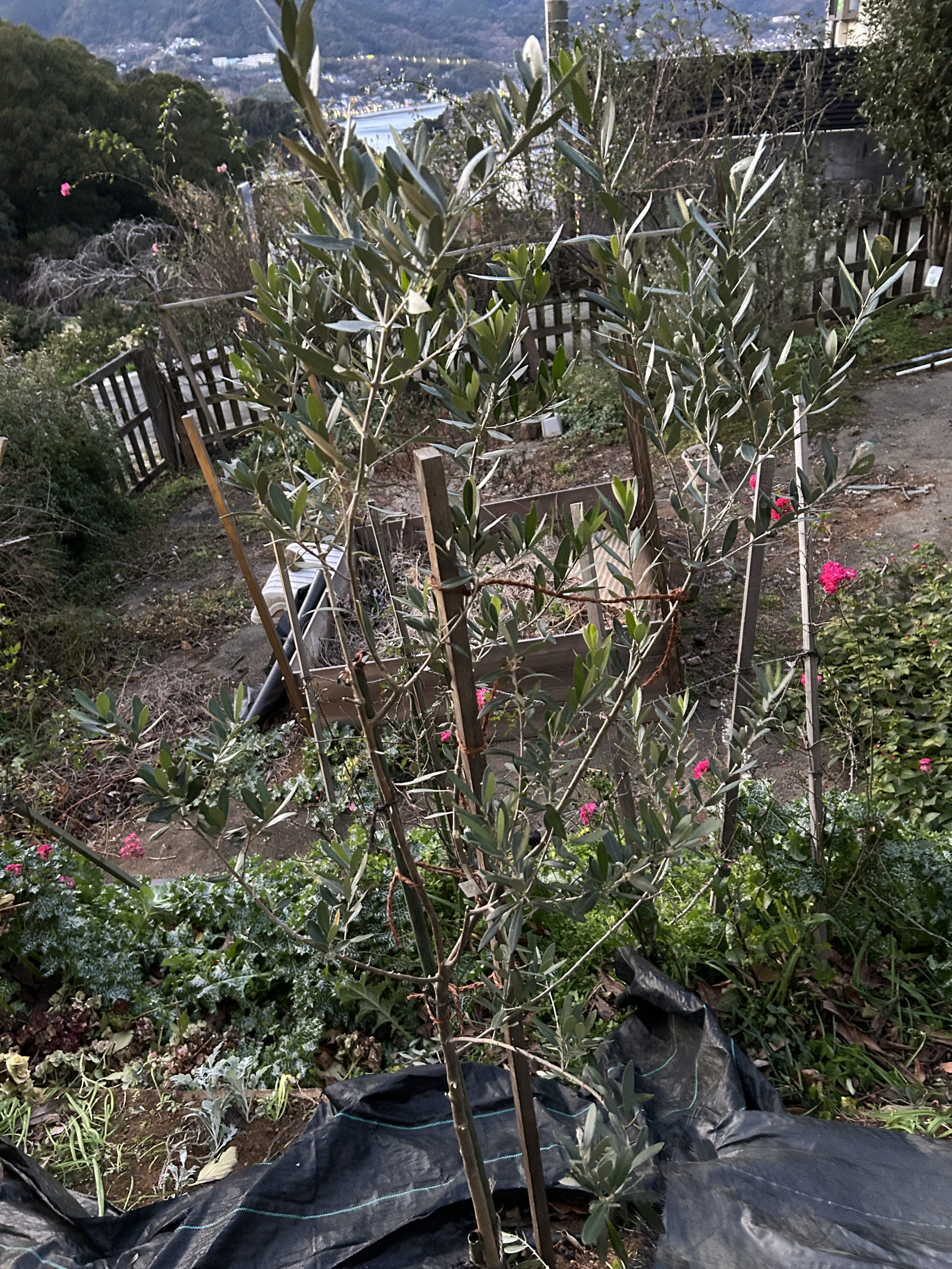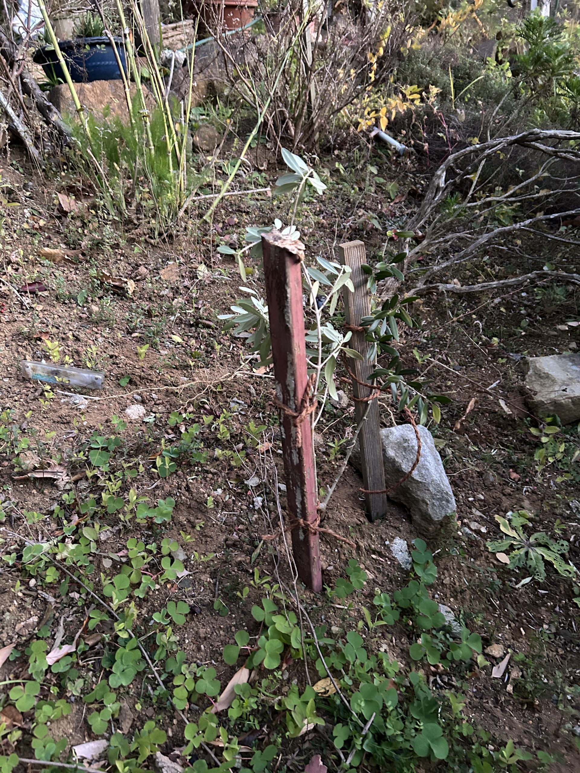 先週に引き続き若いオリーブの支柱を強化した。しばらくは彼らの成長を見守るしかない。