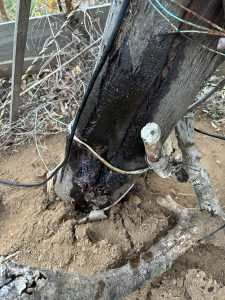 主の幹から分岐していた枝幹が根本から風にあおられて折れて
